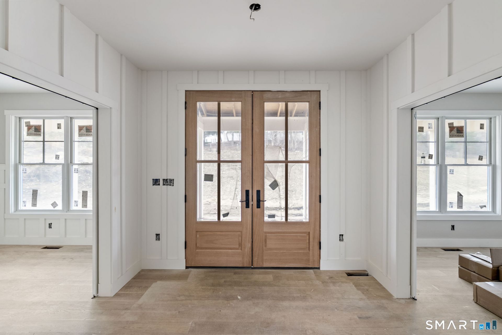 Presenting a truly rare opportunity for BRAND NEW CONSTRUCTION in Roxbury, CT, this luxury residence offers approximately 3,300+ SF of meticulously designed living space, including a spacious finished basement & attached double garage. Enjoy exquisite finishes throughout, highlighted by 6" white oak hardwood flooring, custom architectural millwork and decorative shiplap details. The gourmet Kitchen is designed with a farmer sink, pot filler, stone countertops and high-end stainless steel appliances including double wall ovens, LP gas cooktop & microwave drawer. The open plan Living Room centers on a remote-controlled LP gas fireplace with stone surround and features a dramatic 16' wide x 8' high Andersen sliding glass door leading directly to the outdoor entertaining space. Two additional rooms could serve as a study/den and a formal dining room. A main-level Primary Bedroom offers a generous walk-in closet and en-suite bath featuring a spa-like experience with double shower systems, zero-clearance shower floor with a linear drain and wall-to-wall glass. The powder room and Mud room (with laundry) complete the main level. Upstairs there are two bedrooms which share a full bath, a large bedroom with an en-suite bath, and a large walk-in attic (approx 800 sq ft) ready for optional future finishing. Further living flexibility is provided by an expansive 41' long finished lower level and a full bath.