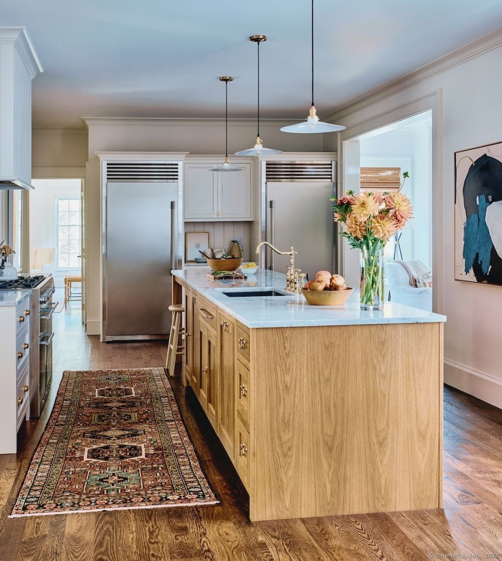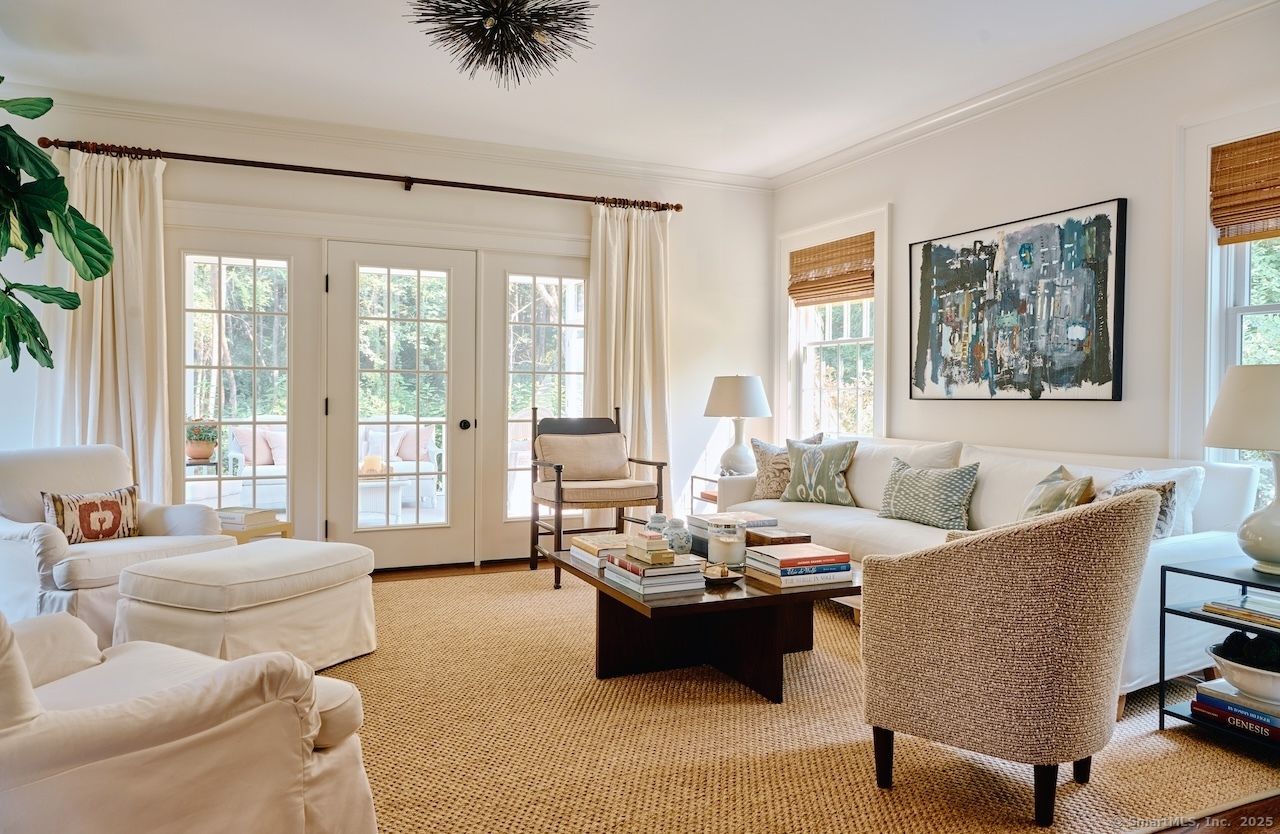 Set on 7 acres directly across from protected conservation land, this turnkey Sharon retreat offers exceptional privacy, wooded views, and refined country living. Fully reimagined in 2024 and recently featured in Litchfield County Magazine, the 4-bedroom, 3.5-bath home spans 3,105 square feet of light-filled interiors. Hardwood floors, soaring ceilings, and well-proportioned rooms create a sense of warmth throughout. The kitchen anchors the home with a 13-foot island, AGA gas range, custom hood, full-size refrigerator and freezer, and Bosch dishwasher, opening seamlessly to a cozy den with gas fireplace and an east-facing screened porch-ideal for quiet mornings and relaxed gatherings. From here, enjoy the gentle sound of spring water and sunset views stretching down the mountain. The living room features a wood-burning fireplace and oversized windows framing the surrounding landscape, while the formal dining room is well-suited for entertaining. The main-level primary suite includes a walk-in closet and a spacious en-suite bath. Upstairs are three additional bedrooms, including one with en-suite bath suitable as a second primary, plus a third full bath. An approved pool site offers future potential. Privately set yet convenient to Sharon Playhouse, Hotchkiss, Indian Mountain, Kent School, and Metro-North access to NYC, this is a thoughtfully renovated, move-in-ready country home with protected views and lasting appeal.